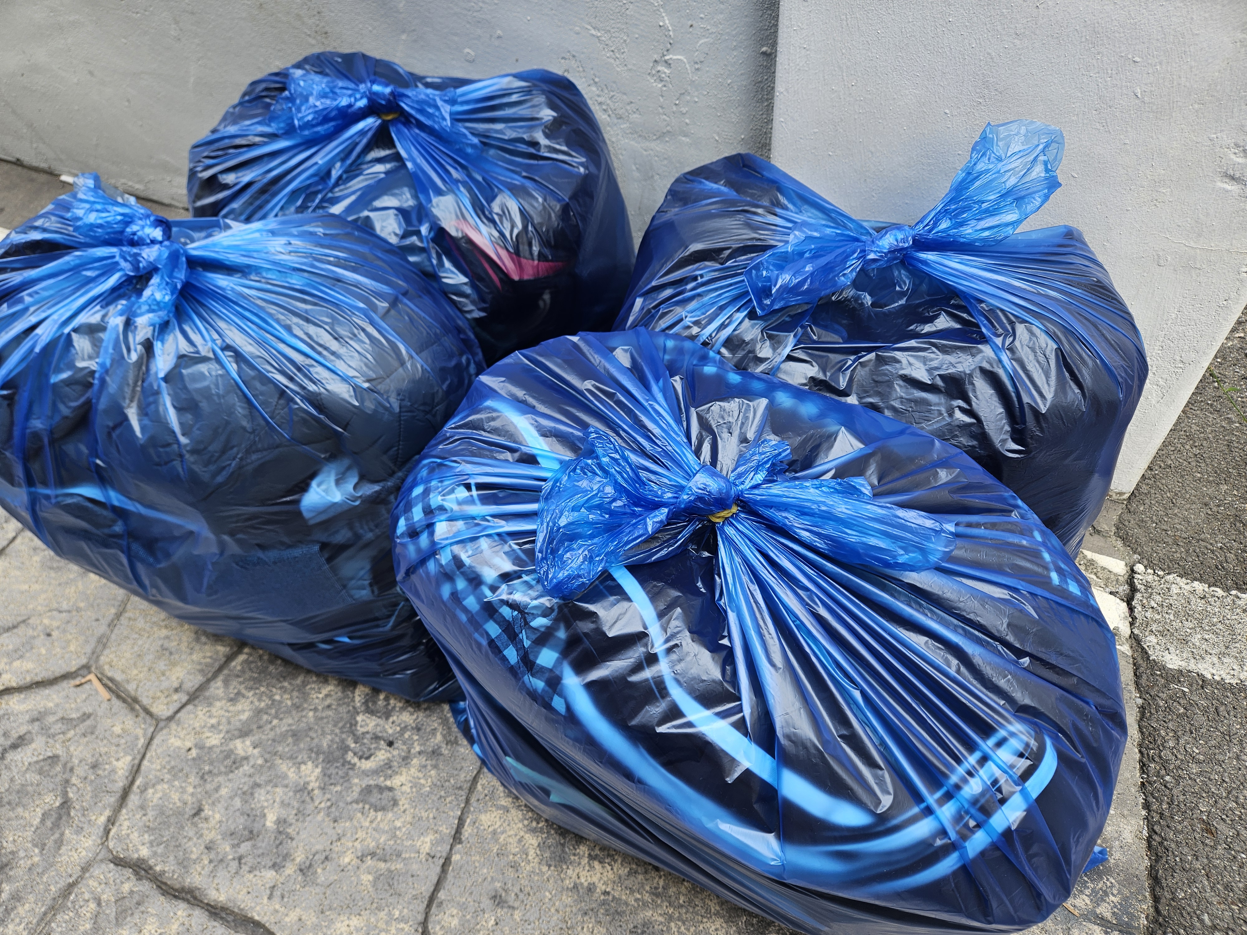 - 헌옷 봉투 여러 개가 모여 있는 상태