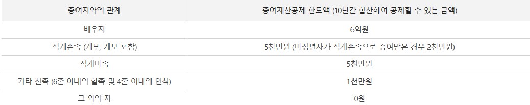 | 증여세 기준 | 부모-자식: 5,000만 원 / 형제자매: 1,000만 원 (10년 기준) |
